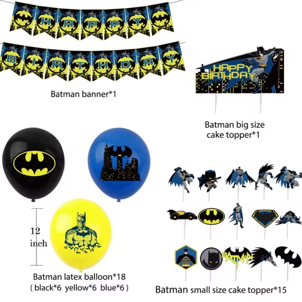 - 18 Latex Balloons: Featuring the iconic Batman logo, these balloons add a touch of excitement to your party decor.