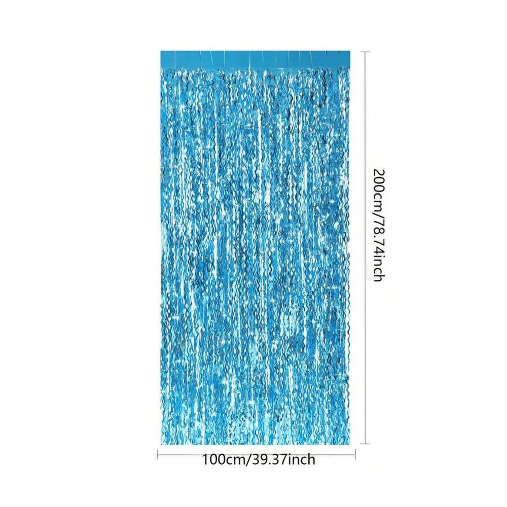 Blue Wavy Foil Curtain Backdrop Party Decoration is perfect for decorating party walls, cake tables, entrances, and photo booth areas. The shiny blue foil catches the light beautifully and helps create a fun and eye-catching party display.
