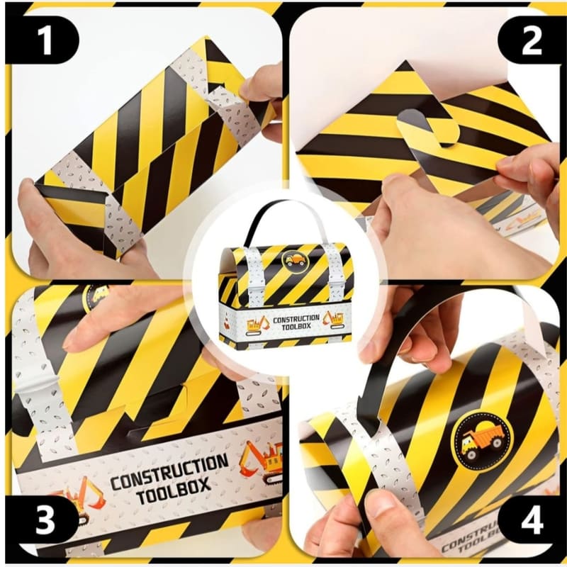 - Featuring bold yellow and black caution stripes with cute construction graphics, these toolbox-style boxes add the perfect finishing touch to your construction-themed birthday party or event.
