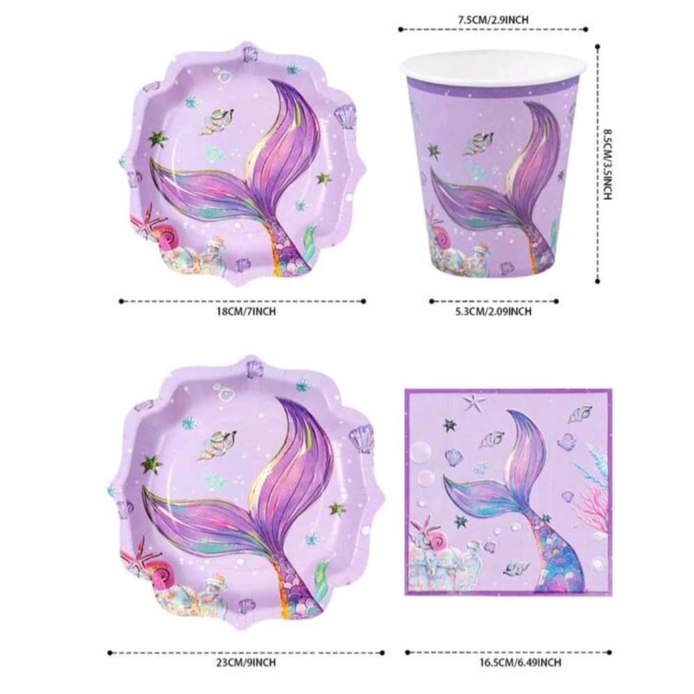 Mermaid Party Tableware Set Purple-Serves 8 Guests