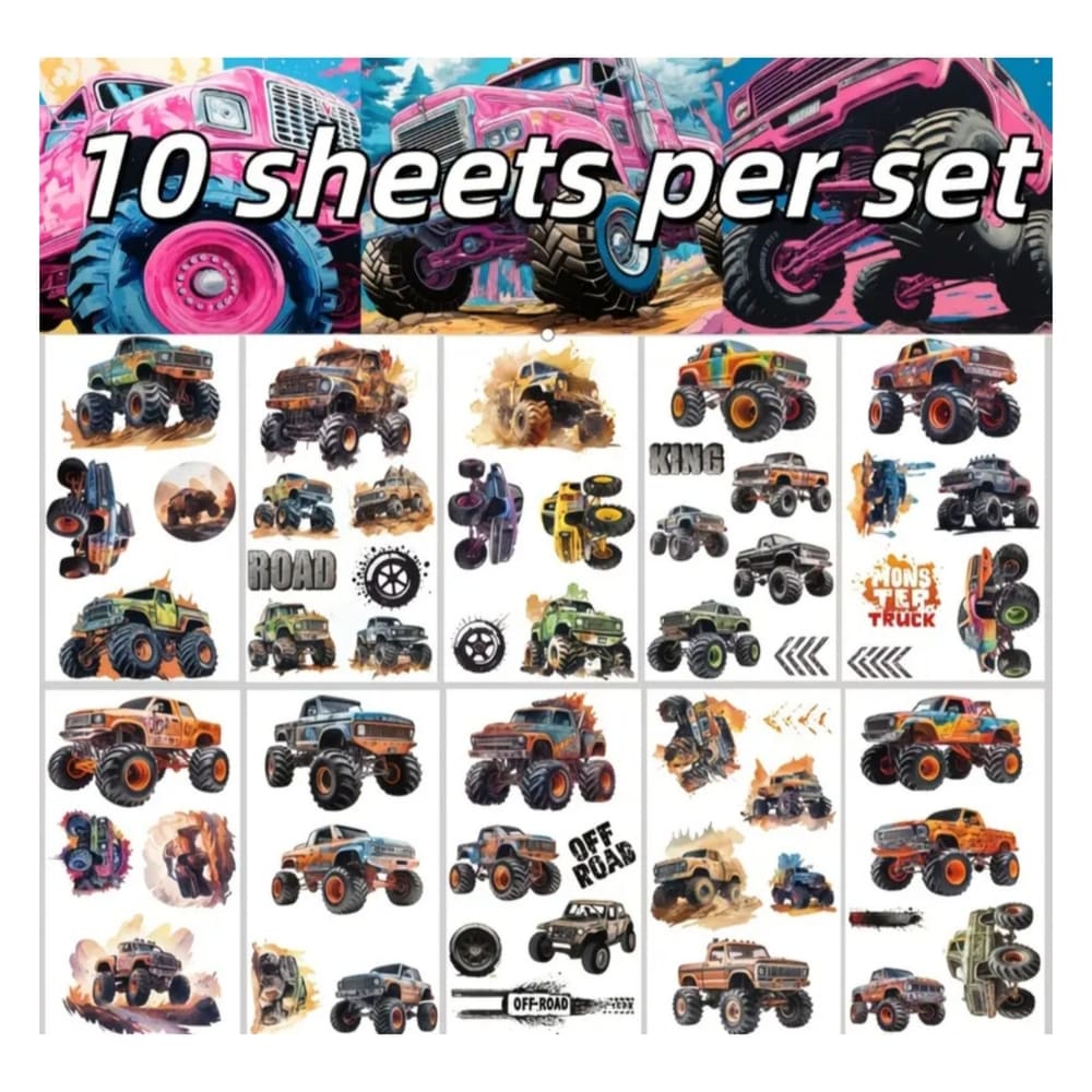 Monster Truck Party Favors-Temporary Tattoos-10 Sheets