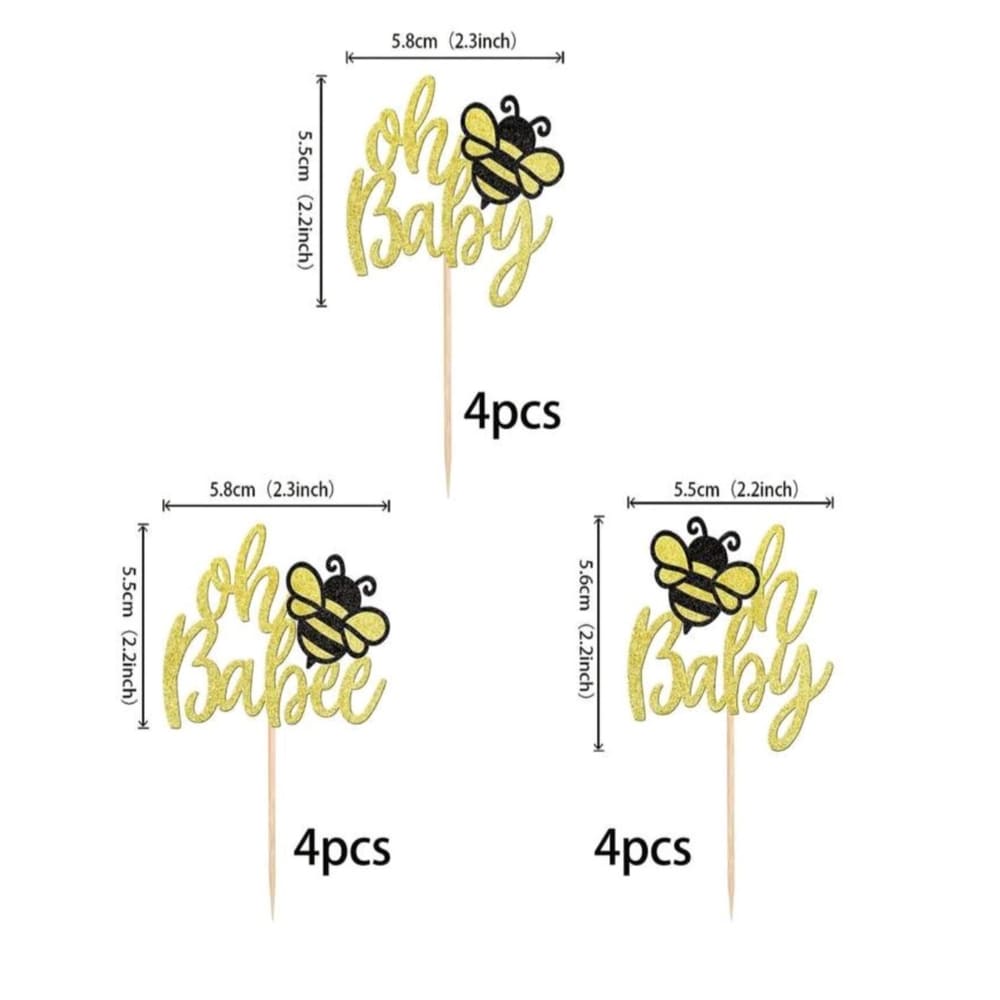 Oh Baby Bee Cupcake Toppers-12 Piece