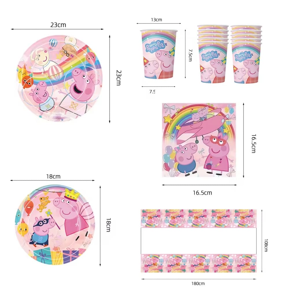 Create the perfect Peppa Pig celebration with this adorable Peppa Pig Pink Tableware Set. Bright, colourful and themed with Peppa and friends, this set includes everything you need for a complete kiddies party table setup.