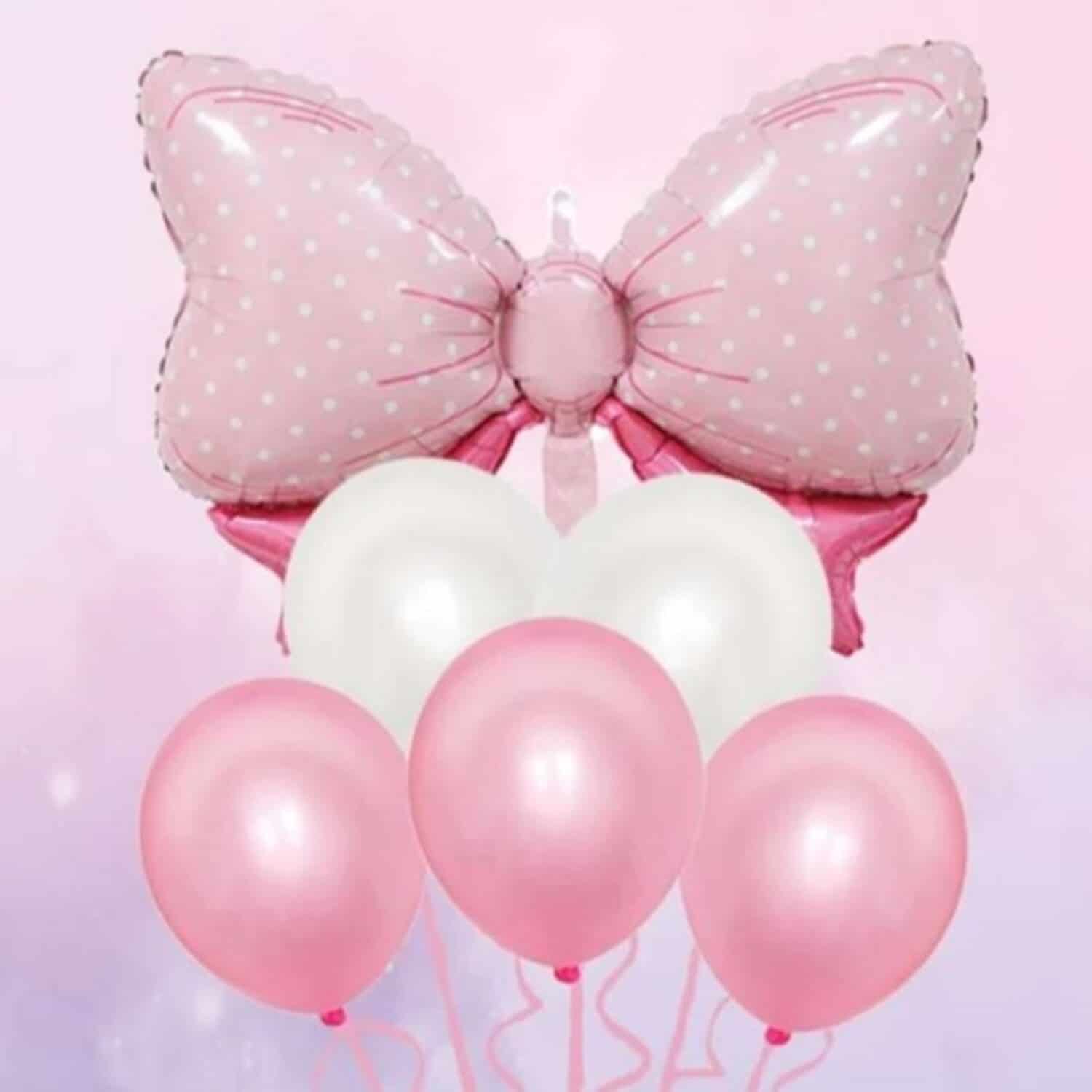 The 6 Piece Pink Bow Balloon includes the following: