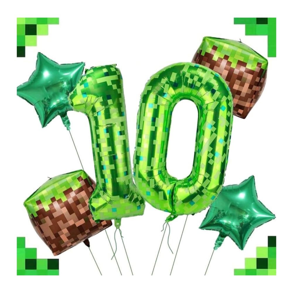 Pixel Number Ten Foil Balloon Bundle โ€“ 5 Piece Set