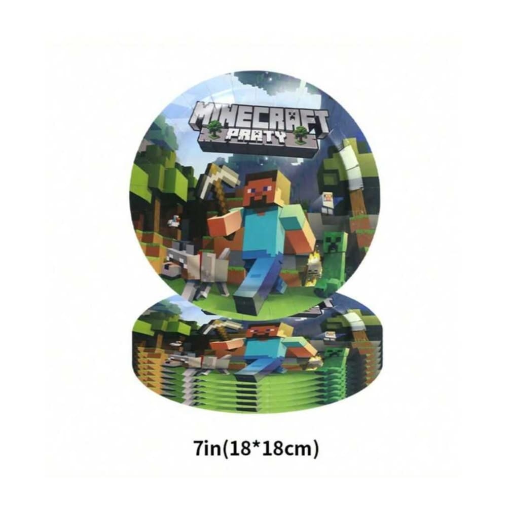 Pixel Party Paper Plates Small. Add a fun touch to your pixel-themed party table with these small round paper plates featuring a colourful block game-inspired design. These paper party plates are perfect for serving cake, snacks, and sweet treats at a pixel birthday party.