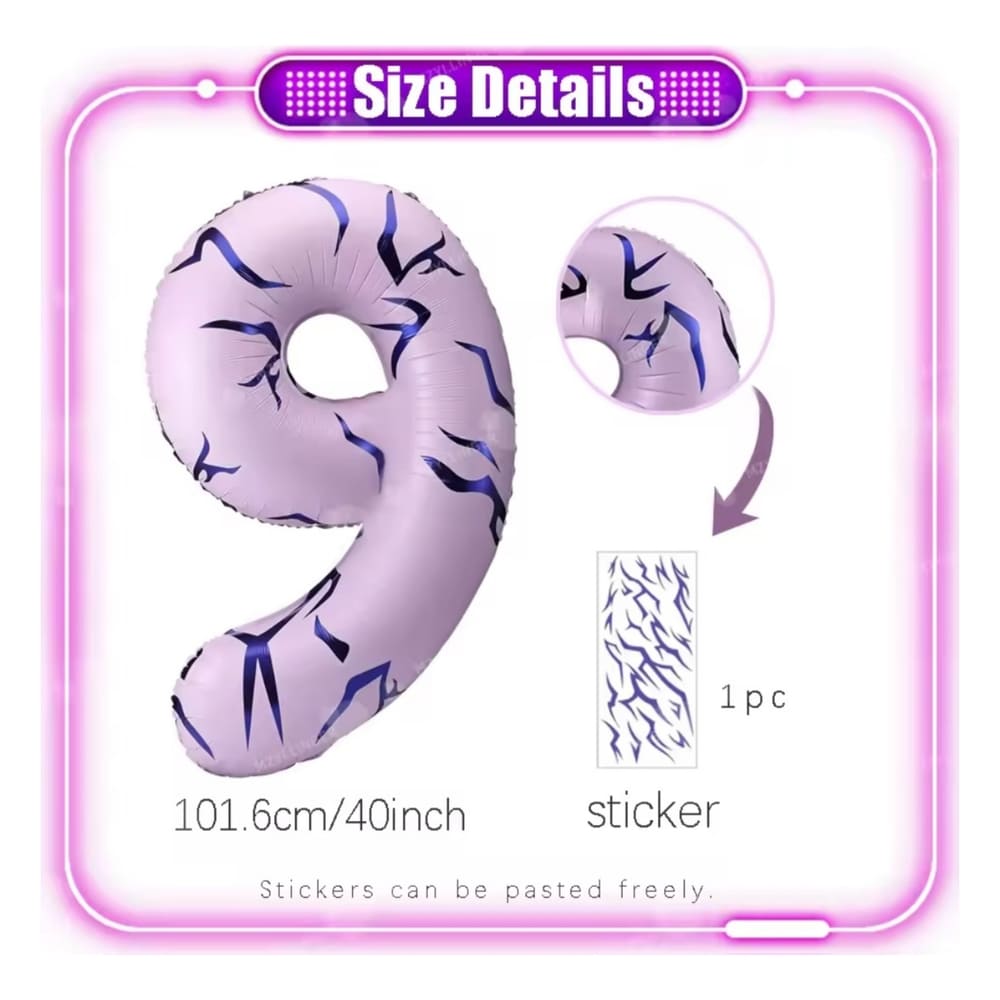 Purple Number Nine Foil Balloon is a fun decorative balloon for birthdays and milestone celebrations. This foil number balloon includes a separate sticker sheet that must be applied after inflating to create the final look shown.