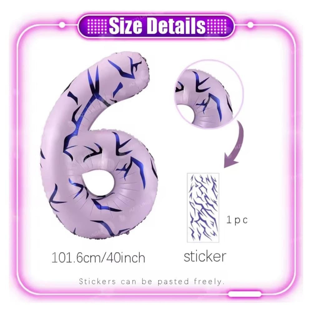Purple Number Six Foil Balloon is a fun decorative balloon for birthdays and milestone celebrations. This foil number balloon includes a separate sticker sheet that must be applied after inflating to create the final look shown.