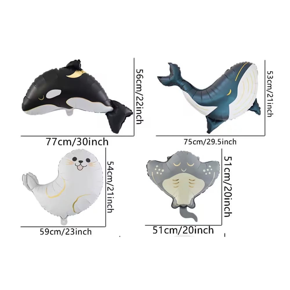 This 4-piece foil balloon set includes four adorable sea animal designs in a soft matte finish, perfect for creating a playful ocean-themed party setup. Use them as part of a balloon arrangement, party backdrop, photo area, or birthday celebration decor.