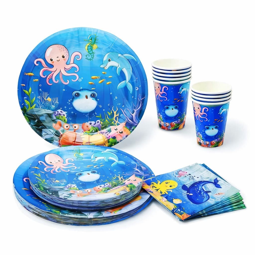 Sea Animal Party Tableware Set β Serves 12 Guests. Make party planning easy with this bright and playful sea animal-themed tableware set, featuring adorable ocean characters β perfect for under-the-sea or ocean birthday parties.