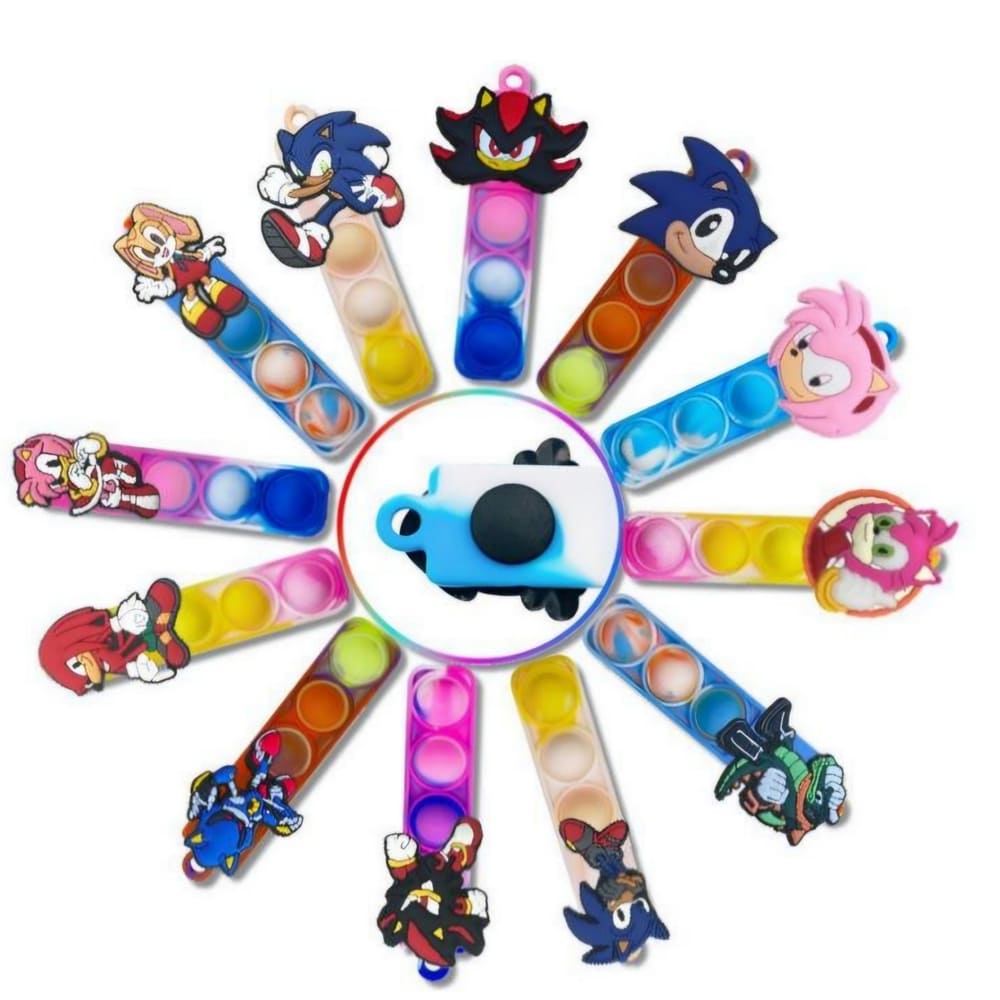 Sonic Themed Party Favors-Pop Fidget Keyrings-12 Piece Set