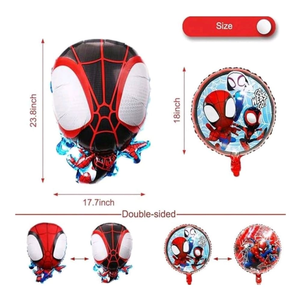 - 6 Round Foil Balloons: Each balloon features a double-sided Spiderman design, with a size of 45 cm, perfect for adding a dynamic element to your party decor.