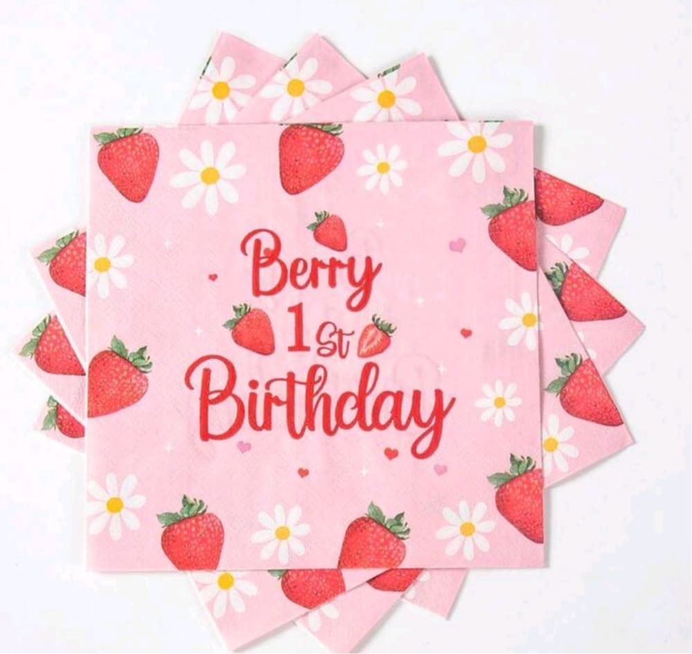 These disposable paper napkins help keep your party table neat while adding a cute decorative touch to your setup. Perfect for serving cake, snacks, desserts, and party treats at a strawberry-themed birthday celebration.