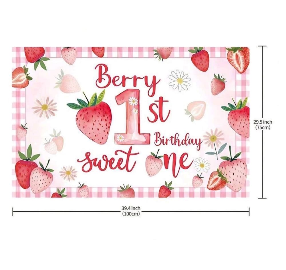 Strawberry First Birthday Sweet One Backdrop 100cm x 75cm is the perfect party decoration for a sweet one’s birthday celebration.