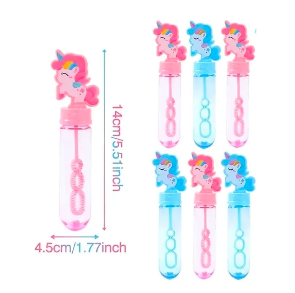 Each pack includes 6 unicorn bubble wands in assorted pink and blue designs (colours are sent at random).